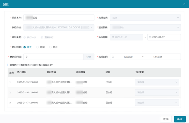重复定时:设置指定机场指定时间或多个时间点,完成周期性航线巡航任务