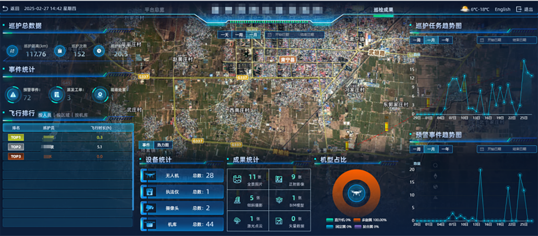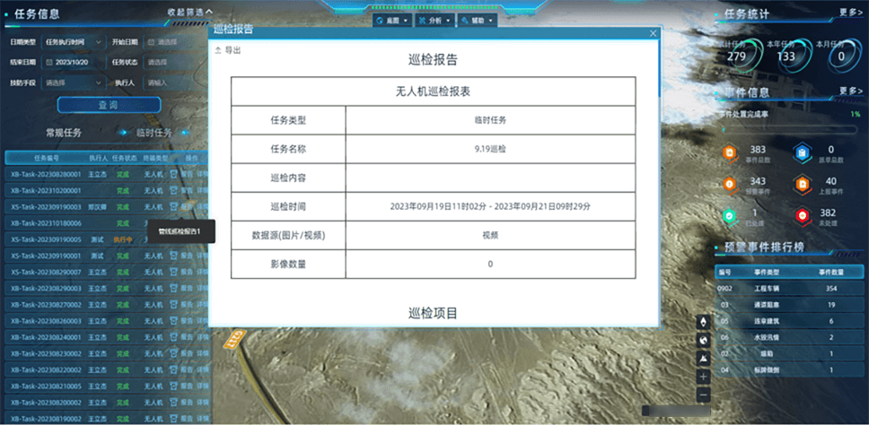 支持对预警事件的处置情况进行统计;支持不同维度巡检里程、频次、时长等统计
