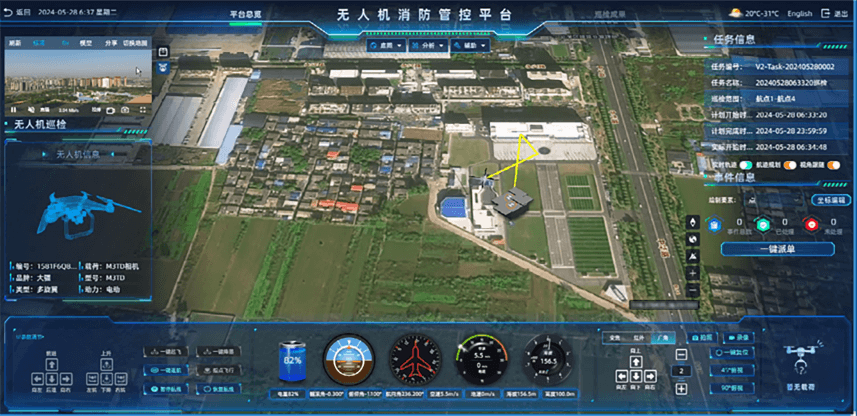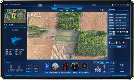 支持实时显示无人机俯仰角、偏航角、翻滚角、距地高度、海拔高度、空速、地速等信息